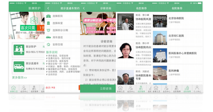 随着滴滴的兴起,客户下单、服务者抢单模式逐渐成熟,公司开发的新康医疗平台主要参考滴滴模式,为用户提供了在线挂号、名医推荐、专人陪诊、代客买药等一站式服务。 服务器端采用了LAMP框架,PHP程序开发,能实现在线注册、短信验证、下单抢单、支付提现等一系列业务流程,为客户提供大部分非诊疗环节外围医疗服务。